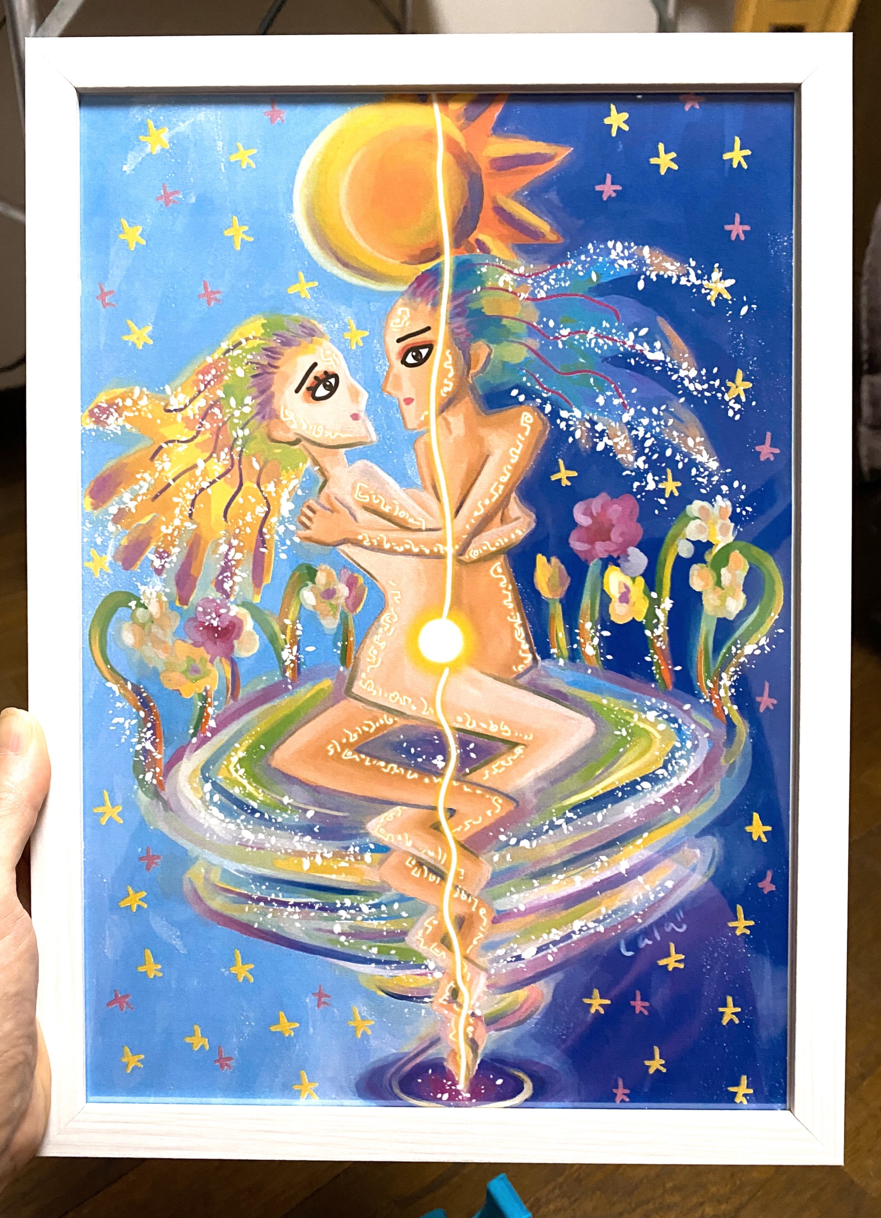 Lalaが眠る前にヴィジョンで見えた男女の絵をそのまま絵に描きました(*´◒`*)