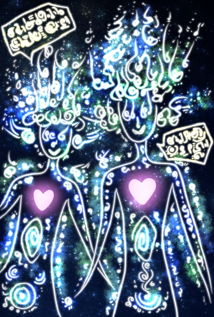 今わたしの元へ宇宙人二人がやってきてるなと思ったので、描いた絵です(๑˃̵ᴗ˂̵)